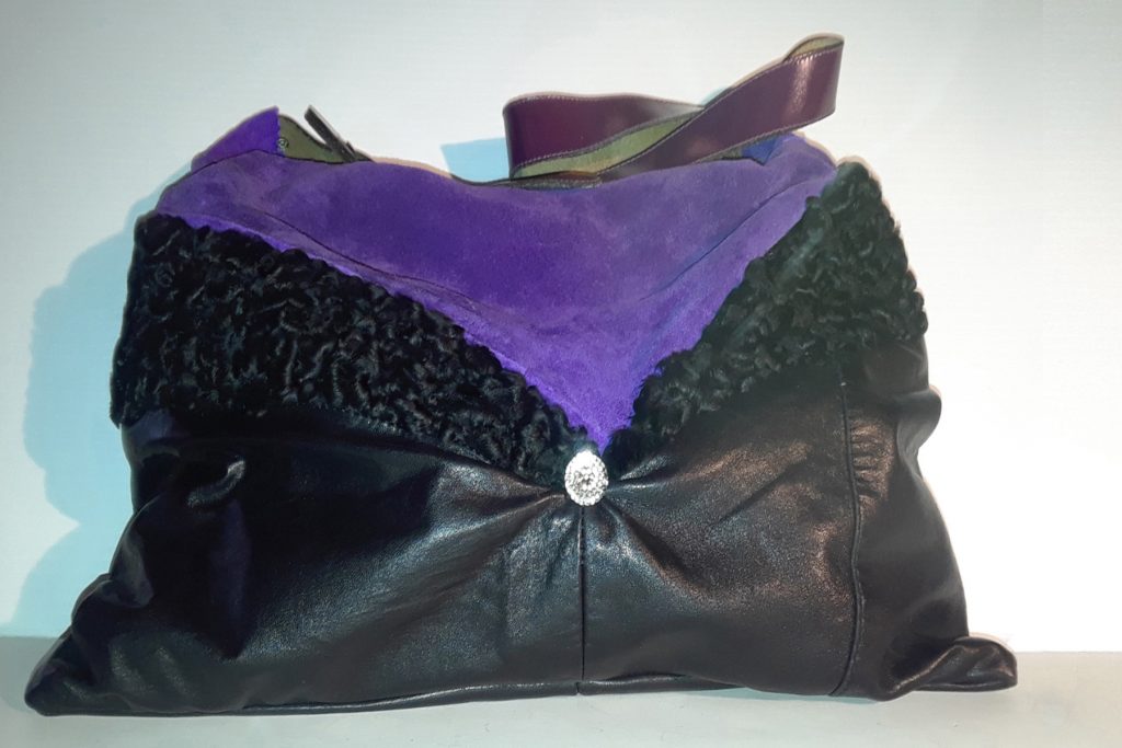 Sac en agneau plongé noir et daim violet,